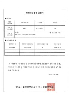 재해예방활동 인정서